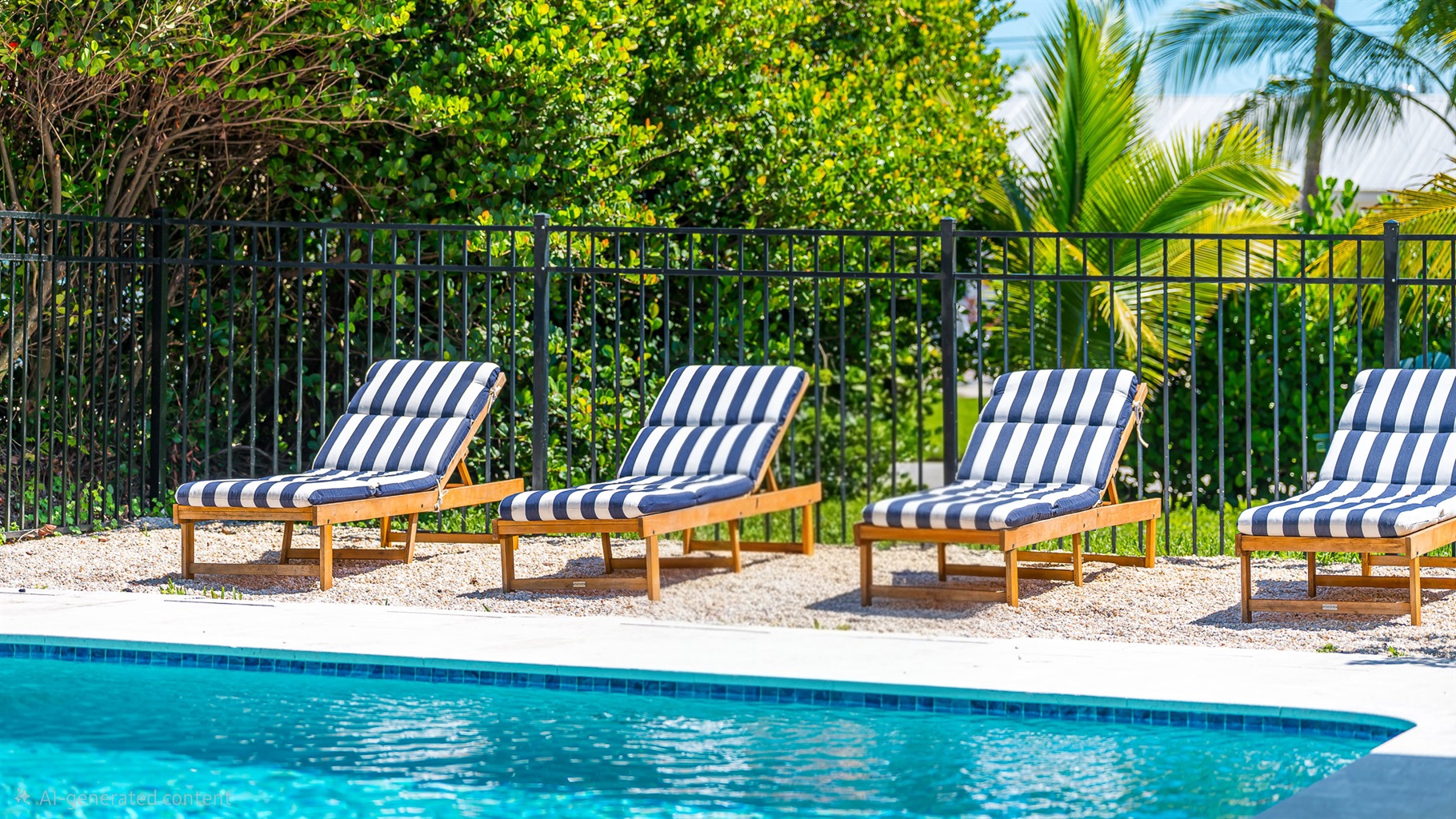The pool deck is finished in shell white limestone, offering a beautiful natural backdrop. By night, enjoy the tiki bar, TV, fire table, and the glow of the Jupiter Lighthouse Beacon.