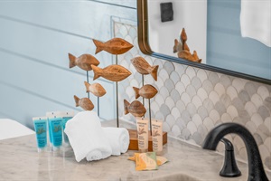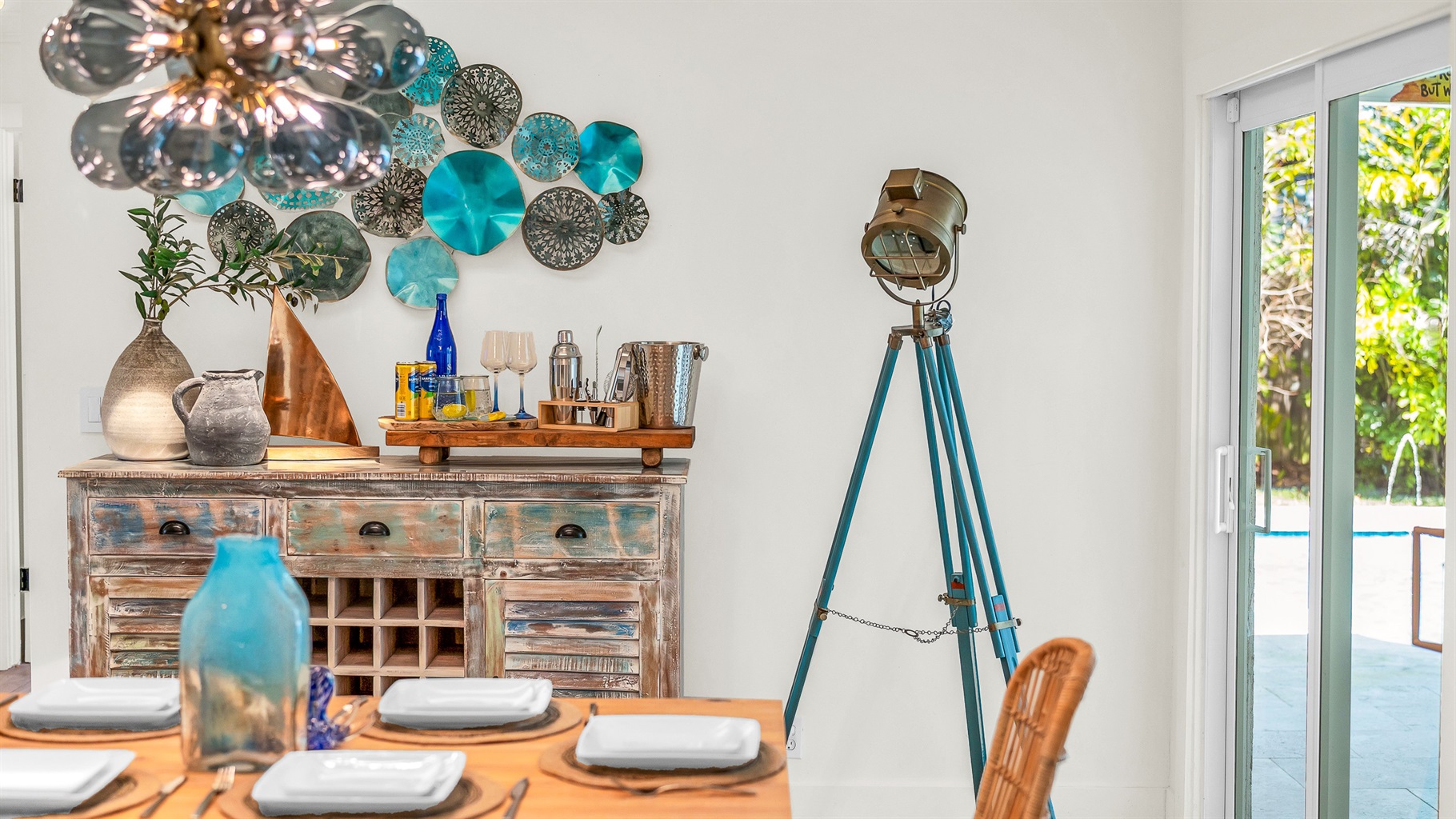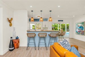 A thoughtful welcome awaits- refreshing beverages ad coastal touches set the tone for a relaxing stay in this beautifully curated Jupiter getaway