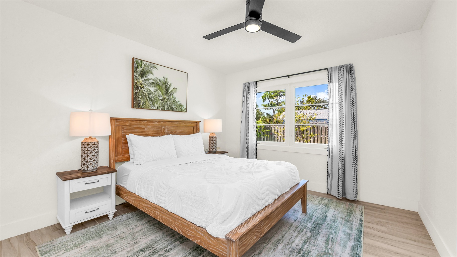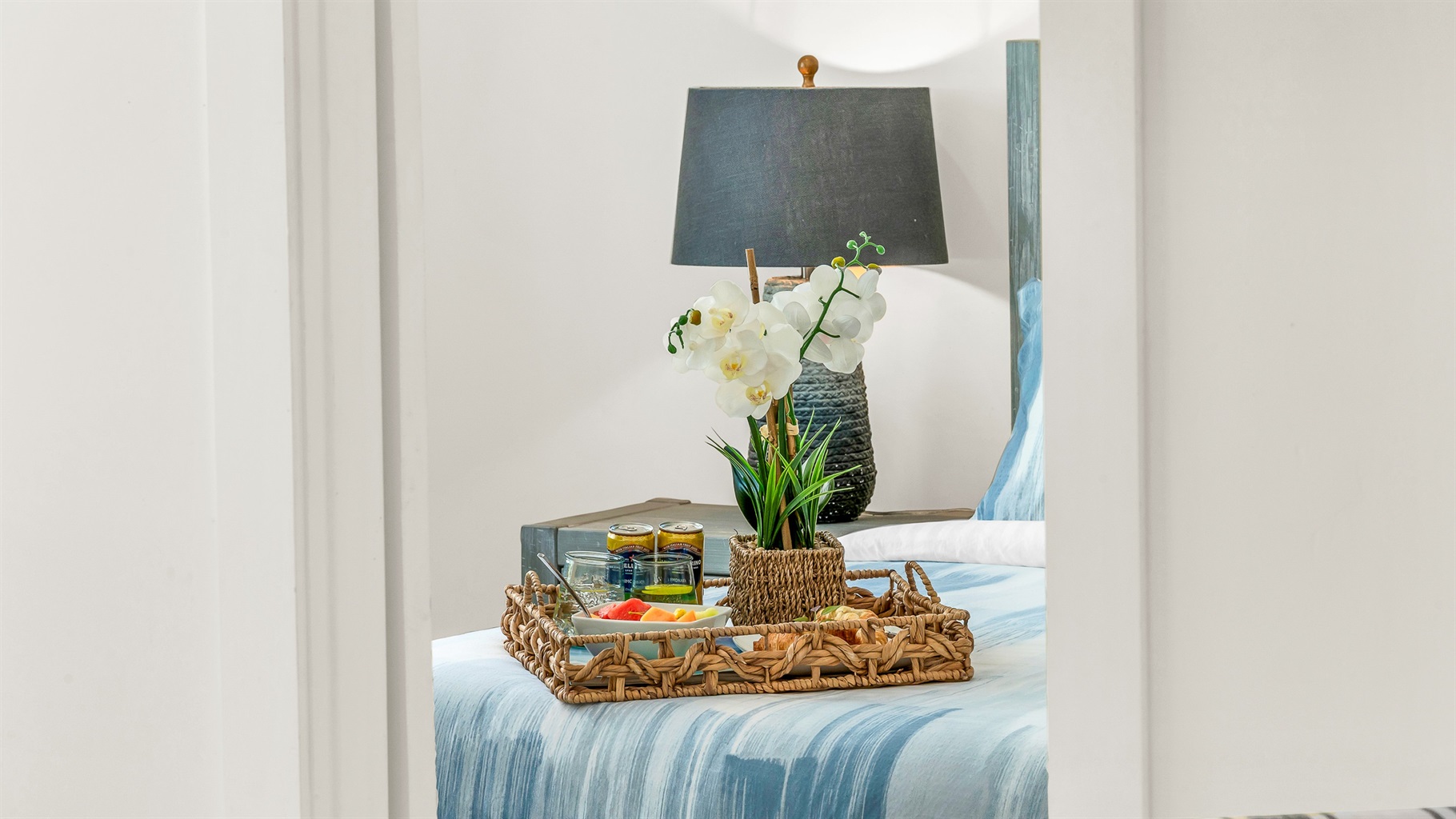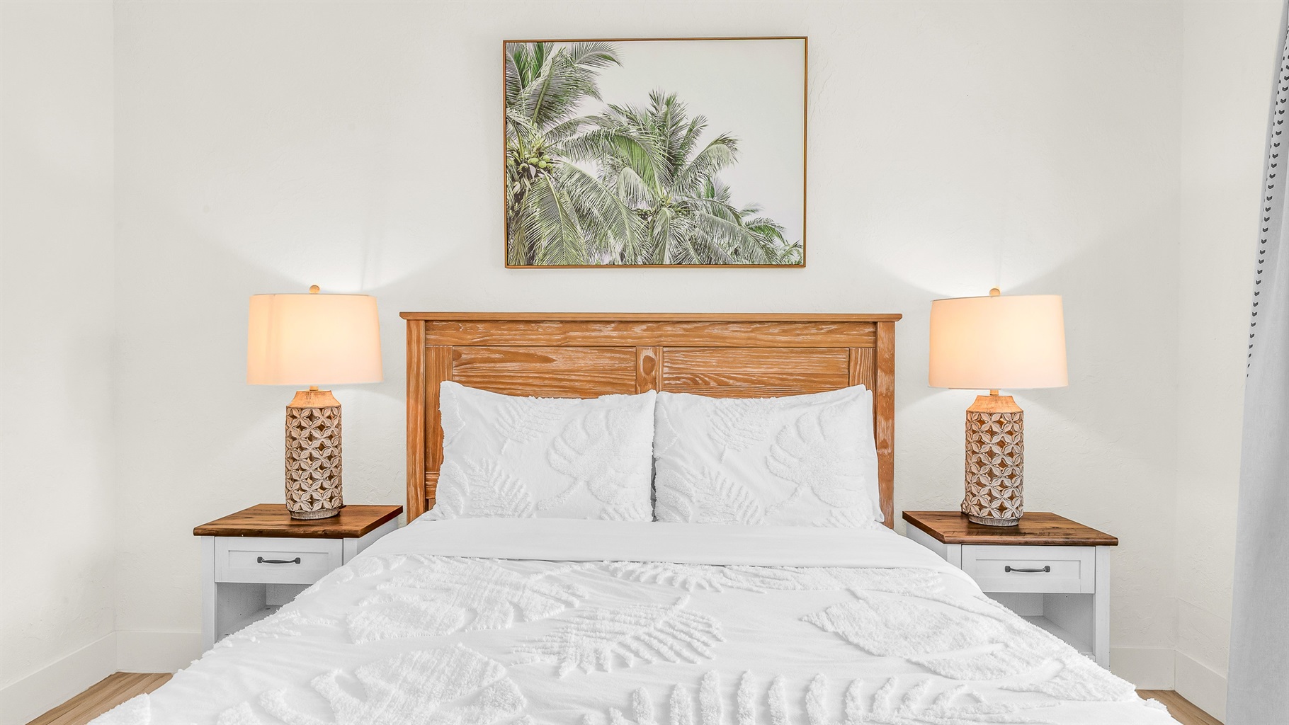 Bedroom 2 offers a relaxing coastal vibe with crisp linens, warm natural light and elegant decor- perfect for guests seeking comfort and tranquility after a day in paradise