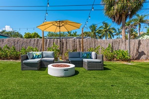 Out back, discover your own private, fully fenced backyard oasis. This turfed outdoor lounge is made for connection—complete with comfy seating, a gas fire table, and glowing string lights for those dreamy Florida nights. Whether you're sipping wine under the stars or letting the kids or pets play freely, it’s a space designed to relax and recharge.