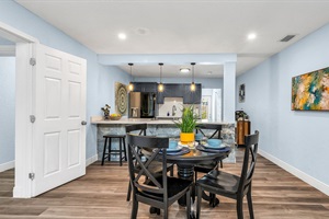 Gather in the stylish dining area with seating for four at the table and four additional counter stools at the breakfast bar. The upgraded kitchen is fully equipped with everything you need for at-home meals or cocktails before your beach adventures.