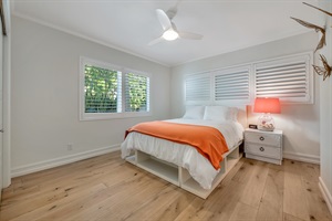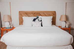 1. Primary Suite: Experience tropical elegance with a king wood headboard and luxurious ensuite bathroom.