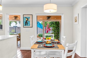 Enjoy a sleek, fully stocked kitchen with quartz countertops, a blender, filter coffee maker, dishwasher, and everything you need to prep meals at home. The layout opens directly to the patio—perfect for indoor/outdoor entertaining.